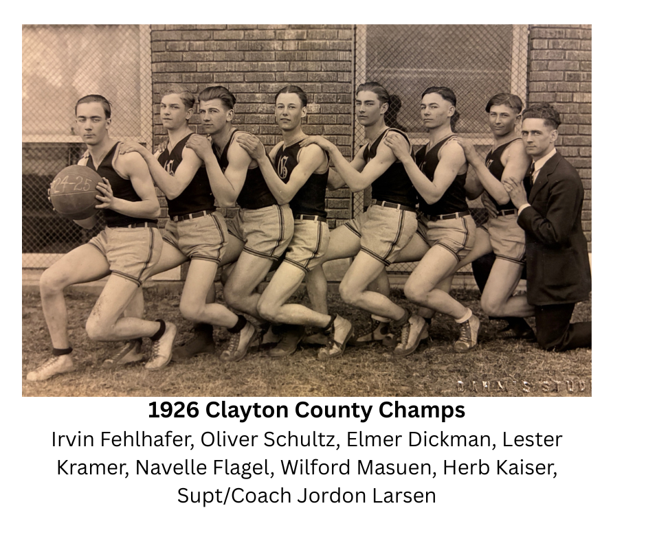 FROM THE ARCHIVES…… The 2026 high school boys basketball season has come to an end. In 1912, Iowa City hosted, and Ottumwa won the first Iowa high school boys championship. The Iowa High School Athletic Association (IHSAA) was organized that same year. In Garnavillo, high school boys basketball didn’t become an official sport until sometime later. The earliest mention of “basketball” for Garnavillo high schoolers is in September 1916. The boys ordered a basketball and in October erected the poles – outdoors. Class teams played each other and two competitive “teams” were formed – the “Moon” and the “Satellites.” There also appeared to be a town team. A news article in 1917 states: “The H.S. boys started basket ball practice this week. The prospects for a team would be good, if we only had an in-door floor to practice on.” The “prospects” started looking better in 1922, when a new school was built that included a gym. It is noted that in November 1922, boys practice began and the girls were planning to organize a team. In September 1923, the new gym floor was “lined” for basketball play and an appeal went out to community businesses to support outfitting the teams and to purchase equipment.