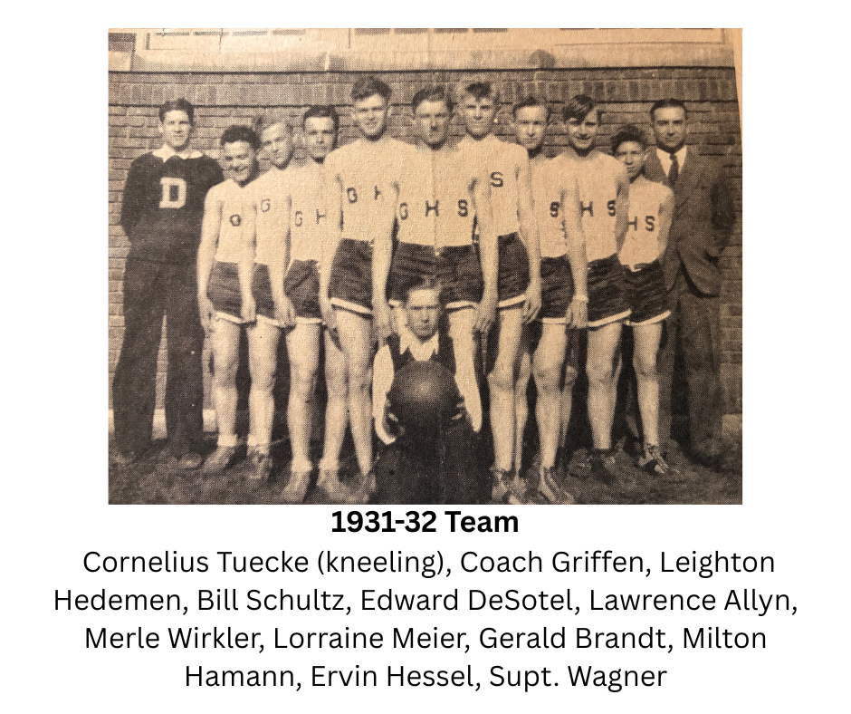 In 1923, the boys coach was Mr. Van Dorn and the team captain was Gustave Ihde. However, no other team member names are mentioned. The first game was scheduled against McGregor on Nov. 16.